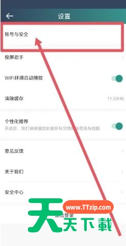 2、然后打开设置之后,点击顶部的“账号与安全”选项。