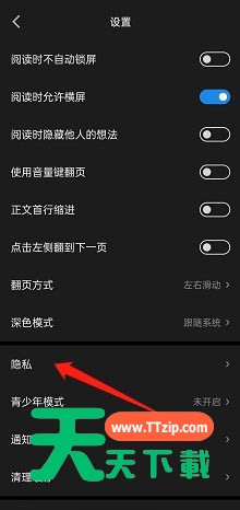 在微信读书中收到了新的关注,系统就会发来消息提醒,那关注消息怎么关呢?下面天天下载就为大家带来了关闭方法,不知道怎么弄的小伙伴可以来看看。 微信读书关注消息怎么关闭?微信读书关注消息关闭方法 1、打开微信读书,点击上方的符号进入设置。 2、选择【隐私】。 3、找到上方的【接收新关注提醒】右侧开关,关闭即可。 以上这篇文章就是微信读书关注消息怎么关闭的步骤内容,有需要的小伙伴快来学习一下吧! @天天下载 除特别注明外,本站所有文章均为 天天下载 原创,转载请注明出处来自 https://www.ttzip.com/26644.html