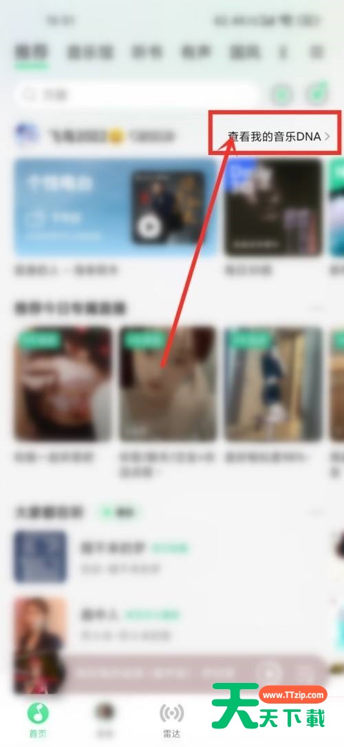 很多小伙伴在使用QQ音乐的时候,想知道怎么查看音乐年龄,下面天天下载就为大家分享QQ音乐查看音乐年龄教程,感兴趣的小伙伴不要错过哦! QQ音乐怎么查看音乐年龄?QQ音乐查看音乐年龄教程 1、首先点击桌面“QQ音乐”图标,打开手机QQ音乐。 2、然后进入app首页,点击页面右上角“查看我的音乐DNA”选项。 3、最后进入我的音乐基因界面,即可查看自己的音乐年龄。 以上这篇文章就是QQ音乐查看音乐年龄教程,更多教程尽在天天下载。 @天天下载 除特别注明外,本站所有文章均为 天天下载 原创,转载请注明出处来自 https://www.ttzip.com/26717.html