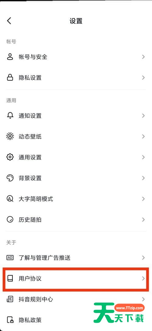 很多小伙伴在使用抖音的时候,想知道用户协议在哪里,下面天天下载就为大家分享抖音用户协议查看教程,感兴趣的小伙伴不要错过哦! 抖音用户协议在哪里?抖音用户协议查看教程 1、首先打开手机上的抖音APP。 2、然后在抖音主页内点击(我)随后点击右上角三个小横条。 3、接着在弹出的选项中点击设置。 4、最后这样就可以查看到抖音里面的用户协议了。 以上这篇文章就是抖音用户协议查看教程,更多教程尽在天天下载。 @天天下载 除特别注明外,本站所有文章均为 天天下载 原创,转载请注明出处来自 https://www.ttzip.com/26800.html