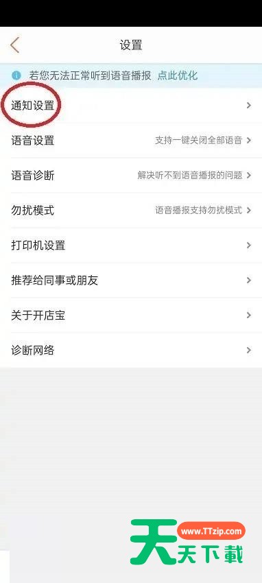 很多小伙伴在使用美团开店宝的时候,想知道怎么关闭语音通知,下面天天下载就为大家分享美团开店宝关闭语音通知方法,感兴趣的小伙伴不要错过哦! 美团开店宝怎么关闭语音通知?美团开店宝关闭语音通知方法 1、首先在手机上点开美团开店宝。 2、然后页面跳转后,点击“我的”。 3、页面跳转后,点击右上角的齿轮图标。 4、接着页面跳转后,点击“通知设置”。 5、最后页面跳转后,打开“一键关闭语音通知”右侧的开关,完成操作。 谢谢大家阅读观看,希望本文能帮到大家! @天天下载 除特别注明外,本站所有文章均为 天天下载 原创,转载请注明出处来自 https://www.ttzip.com/26980.html