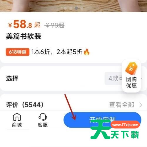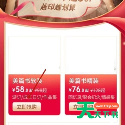 有的小伙伴会问天天下载美篇怎么打印美篇书,下面天天下载就为大家详细的介绍一下教程,想知道的话就来看看吧,相信一定会帮到你们的。 美篇怎么打印美篇书?美篇打印美篇书教程 1、首先找到美篇中需要操作的作品,点击美篇书选项。 2、然后在页面点击一下立即抢购选项。 3、最后找到页面右下角的开始定制选项即可成功操作。 以上这篇文章就是美篇打印美篇书教程,更多教程尽在天天下载。 @天天下载 除特别注明外,本站所有文章均为 天天下载 原创,转载请注明出处来自 https://www.ttzip.com/27060.html