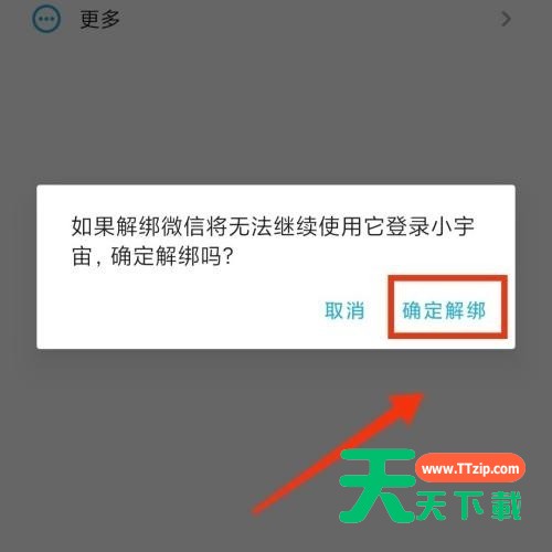 在使用小宇宙的时候,很多小伙伴不知道怎么解绑微信,下面天天下载就给大家带来小宇宙解绑微信教程,有需要的小伙伴不要错过哦。 小宇宙怎么解绑微信?小宇宙解绑微信教程 1、首先打开小宇宙APP,进入软件首页,点击页面右下方的个人。 2、然后点击设置。 3、再点击账号与安全。 4、再点击微信。 5、最后点击确定解绑,即可完成此项设置了。 谢谢大家的观看,更多手机教程请关注天天下载! @天天下载 除特别注明外,本站所有文章均为 天天下载 原创,转载请注明出处来自 https://www.ttzip.com/27068.html