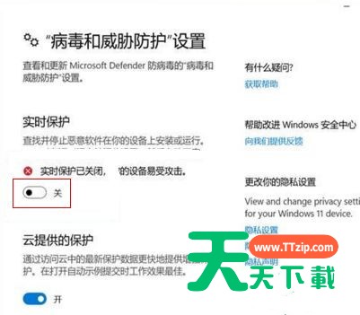 在病毒和威胁防护设置页面,关闭实时保护开关即可。