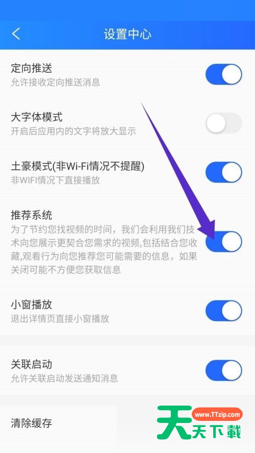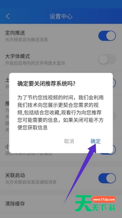 有的小伙伴会问电视家怎么关闭推荐系统,下面天天下载就为大家详细的介绍一下,想知道的话就来看看吧,相信一定会帮到你们的。 电视家怎么关闭推荐系统?电视家关闭推荐系统教程 1、首先在底部选项中,点击最右边的我的,如图所示。 2、然后进入我的页面,点击设置选项打开,如图所示。 3、接着在设置中心页面,点击推荐系统选项关闭,如图所示。 4、最后弹出提示窗口,点击确定关闭推荐,如图所示。 以上这篇文章就是电视家怎么关闭推荐系统的步骤内容,有需要的小伙伴快来学习一下吧! @天天下载 除特别注明外,本站所有文章均为 天天下载 原创,转载请注明出处来自 https://www.ttzip.com/27162.html