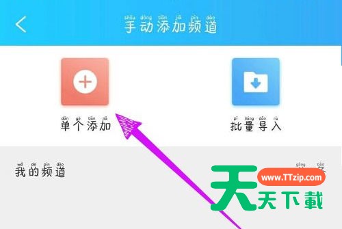 很多小伙伴在使用电视家的时候,想知道怎么添加频道,下面天天下载就为大家分享电视家添加频道方法,感兴趣的小伙伴不要错过哦! 电视家怎么添加频道?电视家添加频道方法 1、首先打开电视家APP。 2、然后点击右下角我的。 3、接着点击我的自建。 4、再选择添加方式,这里以手动添加频道为例。 5、点击单个添加。 6、最后输入频道名称,粘贴频道地址,点击保存即可。 以上这篇文章就是电视家添加频道方法,更多教程尽在天天下载。 @天天下载 除特别注明外,本站所有文章均为 天天下载 原创,转载请注明出处来自 https://www.ttzip.com/27170.html