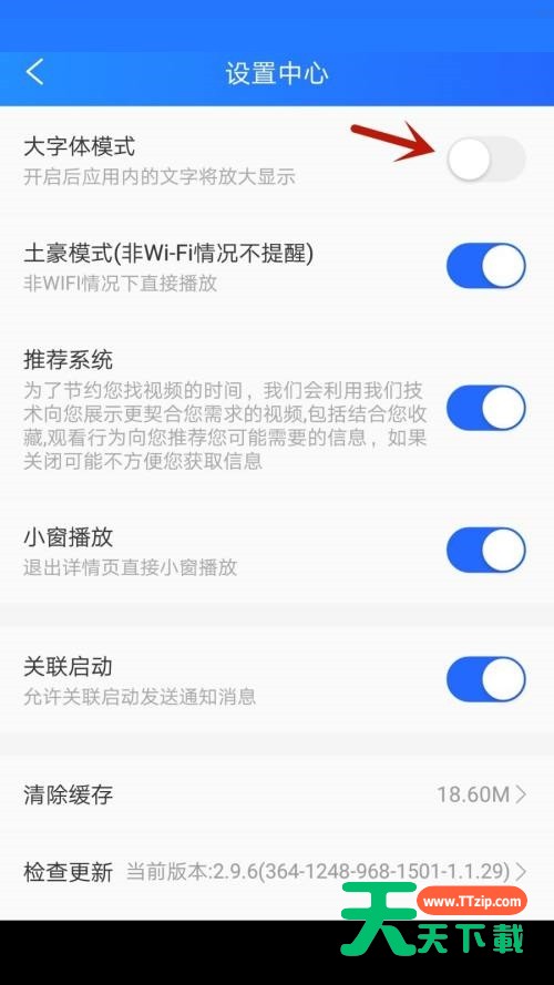 使用电视家的时候,很多小伙伴不知道怎么使用大字体,下面天天下载就给大家带来电视家使用大字体教程,有需要的小伙伴不要错过哦。 电视家怎么使用大字体?电视家使用大字体教程 1、首先点击手机桌面安装好的电视家图标。 2、然后点击界面右下方我的。 3、接着点击设置选项。 4、最后点击箭头指的按钮。 谢谢大家阅读观看,希望本文能帮到大家! @天天下载 除特别注明外,本站所有文章均为 天天下载 原创,转载请注明出处来自 https://www.ttzip.com/27185.html