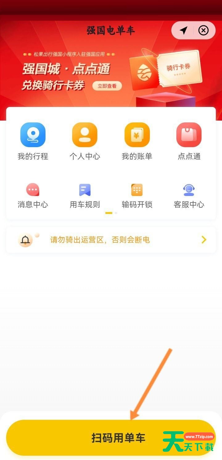 使用学习强国的时候,很多小伙伴不知道怎么扫码用单车,下面天天下载就给大家带来扫码用单车方法,有需要的小伙伴不要错过哦。 学习强国怎么扫码用单车?学习强国扫码用单车方法 1、首先进入学习强国软件,点击上面我的选项。 2、然后点击下面的强国电单车选项。 3、接着点击下面的同意并开始使用选项。 4、再点击下面的扫码用单车选项。 5、最后对着二维码,进行扫码用车即可。 谢谢大家的观看,更多手机教程请关注天天下载! @天天下载 除特别注明外,本站所有文章均为 天天下载 原创,转载请注明出处来自 https://www.ttzip.com/27338.html