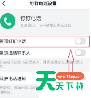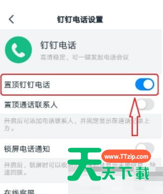 使用钉钉的时候,很多小伙伴不知道怎么置顶钉钉电话,下面天天下载就给大家带来钉钉置顶钉钉电话教程,有需要的小伙伴不要错过哦。 钉钉怎么置顶钉钉电话?钉钉置顶钉钉电话教程 第一步:首先我们打开手机钉钉app,点击进入钉钉(如图所示)。 第二步:然后点击右上角“电话”图标(如图所示)。 第三步:接着点击“管理”,再点击“…”(如图所示)。 第四步:接下来点击“置顶钉钉电话”右边按钮(如图所示)。 第五步:最后按钮由灰变蓝,就成功置顶钉钉电话了(如图所示)。 以上这篇文章就是钉钉置顶钉钉电话教程,更多教程尽在天天下载。 @天天下载 除特别注明外,本站所有文章均为 天天下载 原创,转载请注明出处来自 https://www.ttzip.com/27383.html