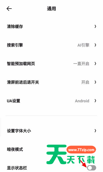 很多小伙伴使用夸克浏览器的时候,想知道怎么显示状态栏,下面天天下载就带来夸克浏览器显示状态栏方法,感兴趣的小伙伴不要错过哦! 夸克浏览器怎么显示状态栏?夸克浏览器显示状态栏方法 第一步:在手机桌面打开夸克浏览器; 第二步:登录进入后,在夸克首页,点击 ☰; 第三步:在菜单页面,点击设置; 第四步:在设置页面,点击通用; 第五步:在通用页面,开启显示状态栏。 谢谢大家阅读这篇夸克浏览器显示状态栏方法,更多手机教程请关注天天下载! @天天下载 除特别注明外,本站所有文章均为 天天下载 原创,转载请注明出处来自 https://www.ttzip.com/27550.html