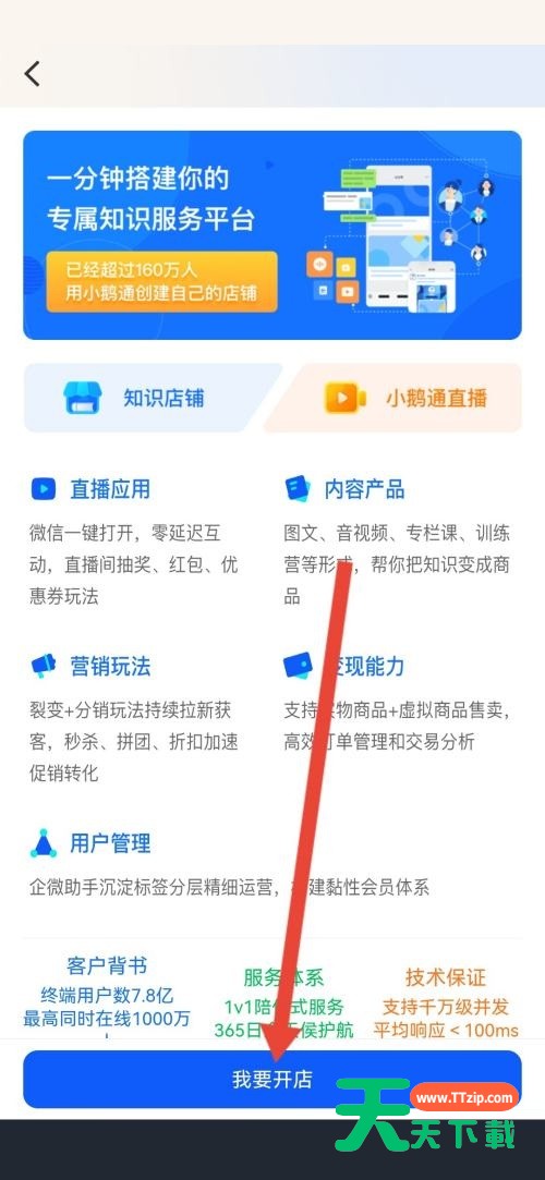 今天天天下载为大家带来了小鹅通助手创建我的知识店铺教程,想知道怎么做的小伙伴来看看接下来的这篇文章吧,相信一定会帮到你们的。 小鹅通助手怎么创建我的知识店铺?小鹅通助手创建我的知识店铺教程 1、首先在手机桌面打开【小鹅通助手】,然后进入界面,点击【我的】。 2、接着来到个人主页,点击【创建我的知识店铺】。 3、再进入下面的界面,点击底部的【我要开店】。 4、来到极速开店界面。点击【立即创建】。 5、最后选择主营类目,再点击【确认创建】。 以上这篇文章就是小鹅通助手创建我的知识店铺教程,更多教程尽在天天下载。 @天天下载 除特别注明外,本站所有文章均为 天天下载 原创,转载请注明出处来自 https://www.ttzip.com/27606.html
