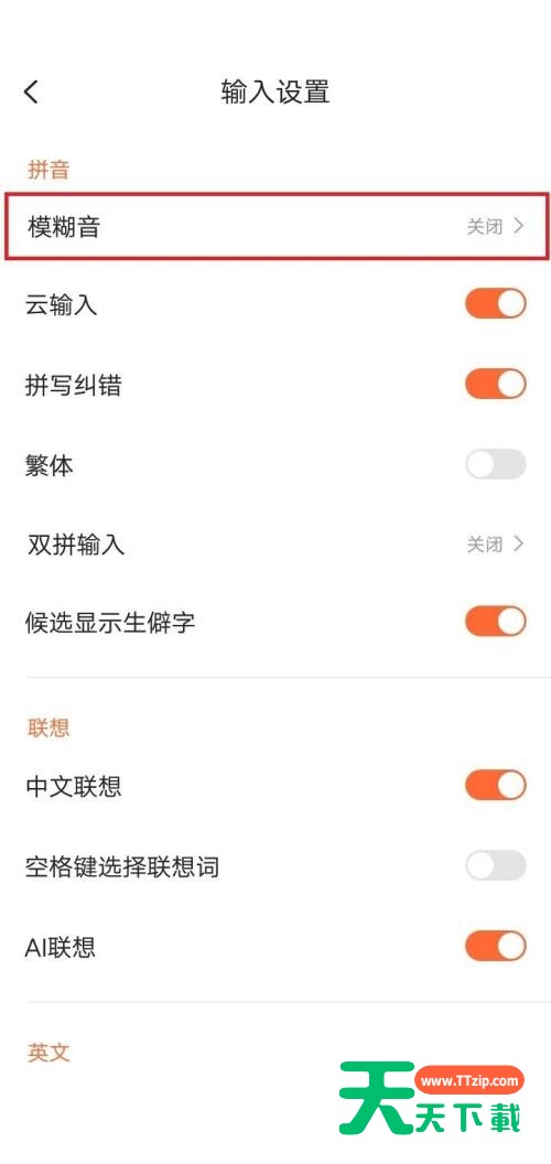 有的小伙伴在使用搜狗输入法的时候,想知道怎么开启模糊音,下面天天下载就为大家分享一下方法,感兴趣的小伙伴不要错过哦! 搜狗输入法怎么开启模糊音?搜狗输入法开启模糊音方法 1、首先打开【搜狗输入法】,点击【我的】按钮。 2、然后点击【设置】按钮。 3、点击【输入设置】选项。 4、接着点击【模糊音】选项。 5、最后点开【模糊音】按钮即可。 谢谢大家阅读观看,希望本文能帮到大家! @天天下载 除特别注明外,本站所有文章均为 天天下载 原创,转载请注明出处来自 https://www.ttzip.com/27636.html