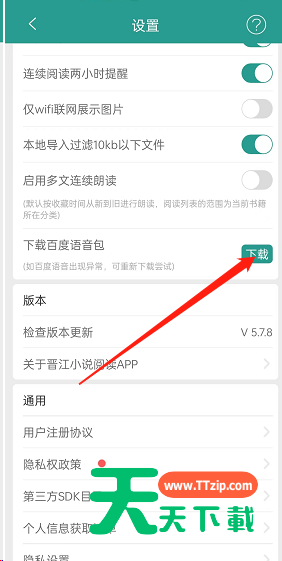晋江文学城是有听书功能的,可以下载不同的语音包,下面天天下载就为大家带来了晋江文学城下载百度语音包的方法,希望对你有所帮助。 晋江文学城怎么下载百度语音包?晋江文学城下载百度语音包方法 1、首先打开软件上方的个人头像; 2、然后找到下方的设置; 3、接着点击如图的下载; 4、最后点击下方的【去购买】即可下载。 以上这篇文章就是晋江文学城下载百度语音包方法,更多教程尽在天天下载。 @天天下载 除特别注明外,本站所有文章均为 天天下载 原创,转载请注明出处来自 https://www.ttzip.com/27685.html