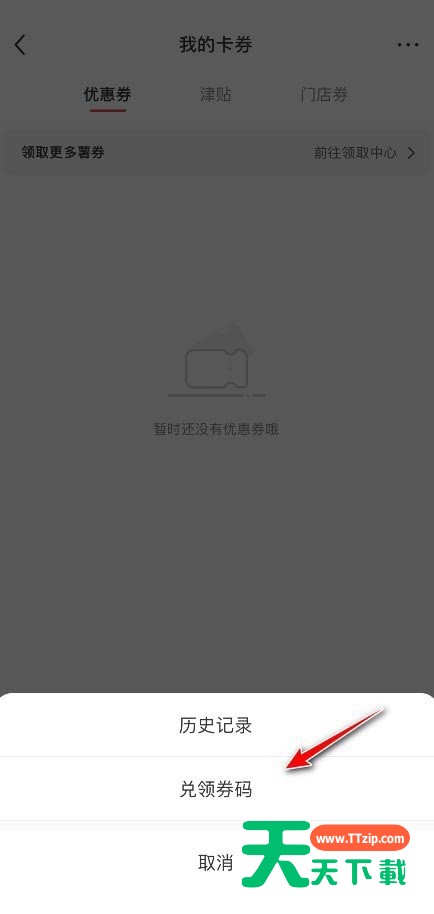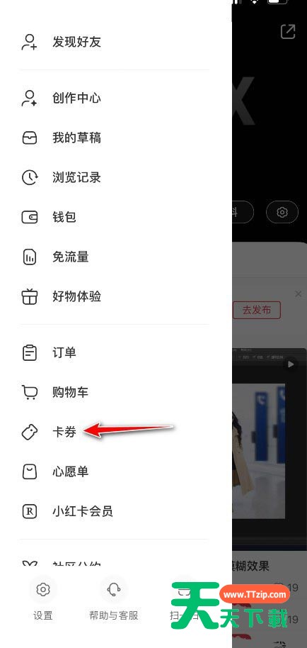 今天天天下载为大家带来了小红书领券码查看方法,想知道怎么做的小伙伴来看看接下来的这篇文章吧,相信一定会帮到你们的。 小红书领券码在哪里?小红书领券码查看方法 1、首先进入小红书我的界面,点击左上角的三条线。 2、然后在左侧的选项中找到卡券,点击进入。 3、接着进入我的卡券后,点击右上角的三个点。 4、最后在下方弹出的窗口中选择对领券码,输入兑换码,点击确认兑换即可。 以上这篇文章就是小红书领券码查看方法的步骤内容,有需要的小伙伴快来学习一下吧! @天天下载 除特别注明外,本站所有文章均为 天天下载 原创,转载请注明出处来自 https://www.ttzip.com/27700.html