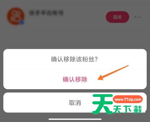 很多小伙伴在使用快手的时候,想知道怎么移除粉丝,下面天天下载就为大家分享快手移除粉丝教程,感兴趣的小伙伴不要错过哦! 快手怎么移除粉丝?快手移除粉丝教程 1、首先打开快手,在我页面点击【粉丝】。 2、然后在粉丝右侧点击【三个点】。 3、接着在下方页面点击【移除粉丝】。 4、最后确认移除该粉丝。 以上这篇文章就是快手移除粉丝教程,更多教程尽在天天下载。 @天天下载 除特别注明外,本站所有文章均为 天天下载 原创,转载请注明出处来自 https://www.ttzip.com/27701.html