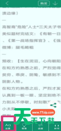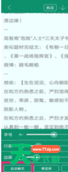 晋江文学城是支持自动翻页功能的,那怎么自动翻页?下面天天下载为大家带来了设置方法,有需要的小伙伴们可以跟天天下载一起来了解下哦! 晋江文学城怎么自动翻页?晋江文学城自动翻页教程 1、首先在晋江app中点击自己想看的书; 2、然后点击屏幕中间,然后会弹出菜单栏,点击设置; 3、接着点击自动翻页; 4、最后设置成功后,点击屏幕中间位置可以设置自动翻页的速度和结束自动翻页。 希望此教程能帮到大家!更多教程请关注天天下载! @天天下载 除特别注明外,本站所有文章均为 天天下载 原创,转载请注明出处来自 https://www.ttzip.com/27771.html