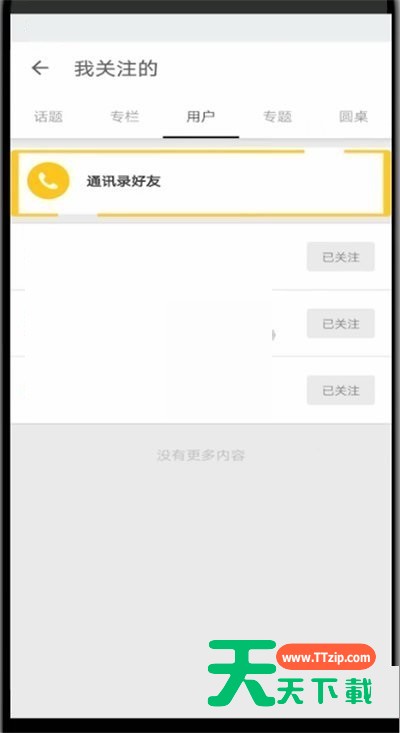 开启了知乎的通讯录权限后,我们就可以关注自己手机通讯录的好友了,知乎怎么添加通讯录好友?下面天天下载就为大家介绍一下方法。 知乎怎么添加通讯录好友?知乎添加通讯录好友方法 1、首先打开知乎,点击右下角我的; 2、然后点击右上角的设置; 3、勾选可通过手机号找到我; 4、然后返回,点击关注; 5、最后点击用户,点击通讯录好友即可查找并关注通讯录好友。 以上这篇文章就是知乎怎么添加通讯录好友的步骤内容,有需要的小伙伴快来学习一下吧! @天天下载 除特别注明外,本站所有文章均为 天天下载 原创,转载请注明出处来自 https://www.ttzip.com/27990.html