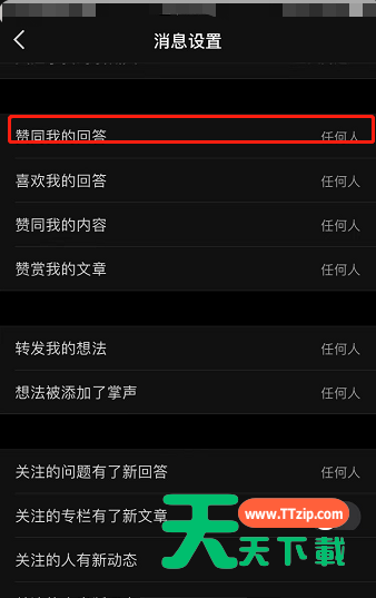 在知乎发布了回答后,如果我们收到了点赞,系统是会有消息提醒的。那知乎点赞提醒怎么关?下面天天下载就为大家带来了关闭方法,有需要的小伙伴来看看吧! 知乎点赞提醒怎么关闭?知乎点赞提醒关闭方法 1、首先打开知乎主界面,点击右下角“我的”选项。 2、然后点击右上角的图标进入设置页面。 3、点击设置页面的消息设置选项。 4、接着点击赞同我的回答。 5、最后点击关闭消息通知提醒。 以上这篇文章就是知乎点赞提醒关闭方法,更多教程尽在天天下载。 @天天下载 除特别注明外,本站所有文章均为 天天下载 原创,转载请注明出处来自 https://www.ttzip.com/27992.html
