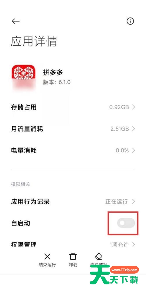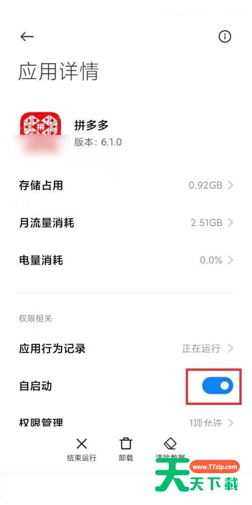 很多小伙伴在使用拼多多的时候,想知道自启动怎么限制?,下面天天下载就为大家分享拼多多自启动限制方法,感兴趣的小伙伴不要错过哦! 拼多多自启动怎么限制?拼多多自启动限制方法 1、首先在手机中找到手机管家图标,点击打开手机管家。 2、然后点击应用管理。 3、接着在应用管理中找到拼多多,点击拼多多。 4、点击自启动后面的开关,关闭自启动。 5、最后关闭自启动后,就会限制拼多多自启动。 谢谢大家阅读观看,希望本文能帮到大家! @天天下载 除特别注明外,本站所有文章均为 天天下载 原创,转载请注明出处来自 https://www.ttzip.com/28711.html