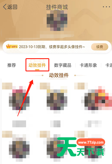 4、随后,进入挂件商城,点击动效挂件,选择自己喜欢的即可。