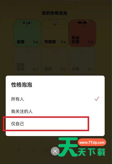 4、勾选仅自己返回,这样其他好友就看不到你的性格泡泡了。