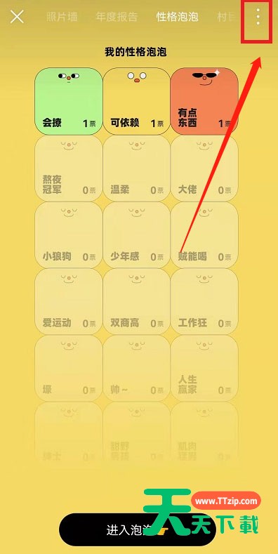 5、返回个人主页后用户们右滑至照片墙可以有效避免性格泡泡显示在主页。