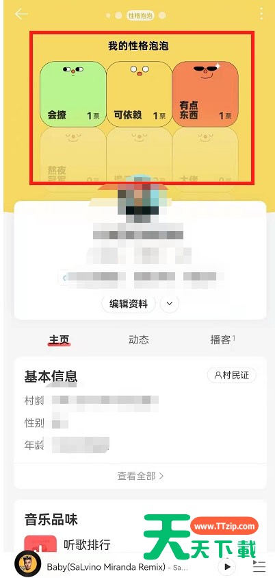 1、网易云音乐页面点击我的进入,个人主页,在个人主页下拉可看到性格泡泡。