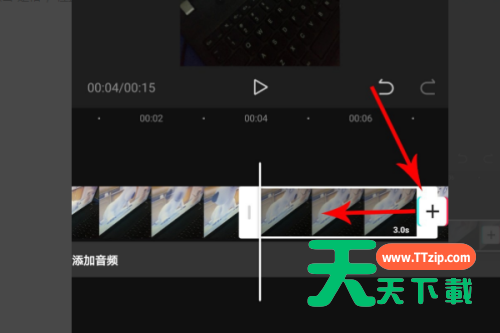 4、点击后,视频素材的第4秒到第7秒的位置被设置成定格,然后按住选框右端向左拖动。