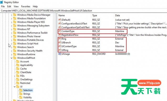 9、然后导航到HKEY_LOCAL_MACHINESOFTWAREMicrosoftWindowsSelfHostApplicability路径。