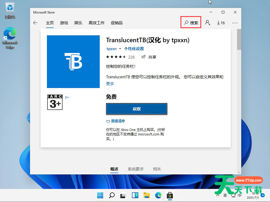 许多小伙伴最近在使用Windows11的时候,总觉得Windows11的任务栏的颜色非常的难堪,想要自己把任务栏调整到透明的,那么具体我们要怎么调整Windows11任务栏透明度呢?下面天天下载就为大家介绍一下吧! 操作方法: 1、首先,我们在桌面打开微软的应用商店。