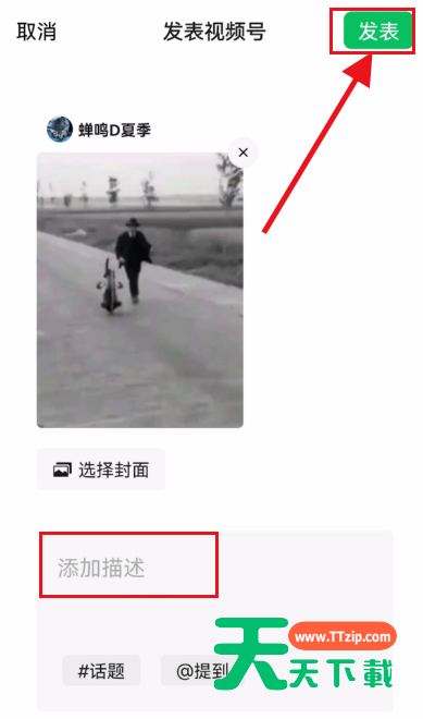 - 为您的视频添加描述,选择合适的封面,最后点击“发表”即可完成同步。
