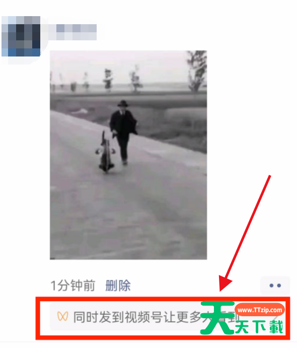 - 在朋友圈发布视频后,您会在下方看到“同时发布到视频号,让更多人看到”的提示。点击该提示。
