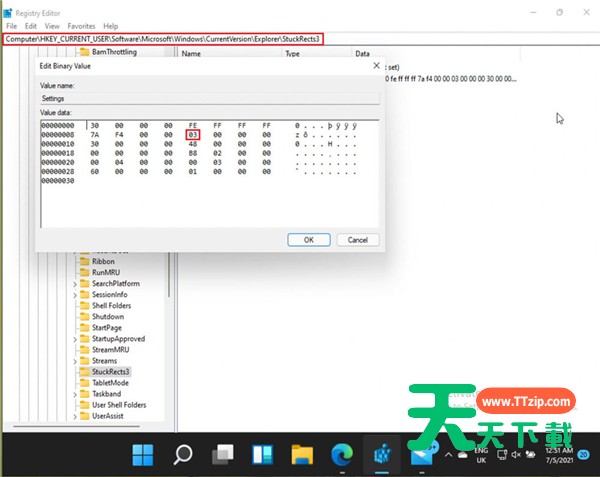 Win11系统是目前非常火热的电脑操作系统,很多的用户都安装使用了,Win11与Win10最大的区别就是任务栏,最近有用户想将Windows11任务栏放在顶部,这该怎么操作呢?下面天天下载就为大家详细的介绍一下,快来看看吧! Windows11任务栏放在顶部方法 方法一:注册表更换 打开注册导航到ComputerHKEY_CURRENT_USERSoftwareMicrosoftWindowsCurrentVersionExplorer StuckRects3打开设置值。