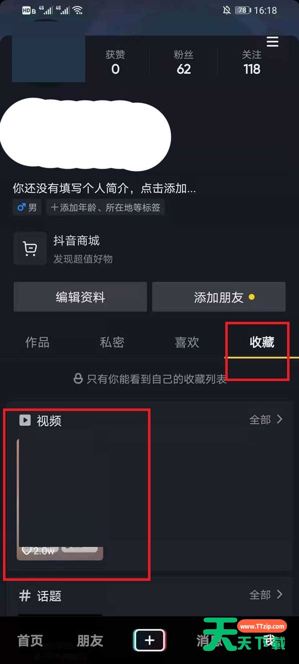 使用抖音的时候,会收藏很多过时的视频,有的用户就想要删除,但是不知道怎么操作,那么下面就让天天下载给大家介绍一下方法。 抖音收藏的视频怎么删除?抖音收藏的视频删除方法 1.首先就需要打开抖音然后点击【我的】进入到个人主页界面中; 2.在主页界面中可以看到【收藏】点击就可以看到收藏的视频,然后点击视频进入到视频内容中; 3.然后在播放视频的时候,点击右下角的转发分享的箭头,打开相关功能; 4.最后在出现的功能界面中,点击【收藏】取消收藏就是删除的。 以上这篇文章就是抖音收藏的视频删除方法,更多教程尽在天天下载。 @天天下载 除特别注明外,本站所有文章均为 天天下载 原创,转载请注明出处来自 https://www.ttzip.com/29487.html