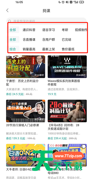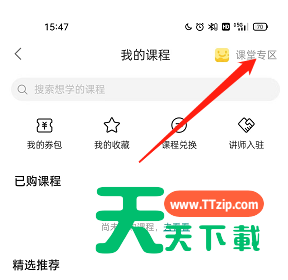 哔哩哔哩有很多网课可以选购。想买自己想要的网课,可以进入课堂专区。有的小伙伴问怎么进入课堂专区,下面就是天天下载带来的方法。 哔哩哔哩课堂专区怎么进入?哔哩哔哩课堂专区进入方法 1、首先在个人中心中找到【我的课程】。 2、然后选择【课堂专区】。 3、接着点击上方的设置。 4、最后你就可以根据分类快速找到自己需要的课程了。 希望此教程能帮到大家!更多教程请关注天天下载! @天天下载 除特别注明外,本站所有文章均为 天天下载 原创,转载请注明出处来自 https://www.ttzip.com/29543.html