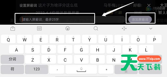 很多人不知道腾讯视频弹幕如何屏蔽关键词?今日为你们带来的文章是腾讯视频弹幕屏蔽关键词的方法,还有不清楚小伙伴和天天下载一起去学习一下吧。 腾讯视频弹幕如何屏蔽关键词?腾讯视频弹幕屏蔽关键词教程 1、打开腾讯视频,进入播放页面,点击横屏播放(如图所示)。 2、点击右上角三个点(如图所示)。 3、选择弹幕设置(如图所示)。 4、点击开启屏蔽词(如图所示)。 5、输入屏蔽词,输入完成后,点击添加屏蔽词即可(如图所示)。 以上就是天天下载给大家带来的腾讯视频弹幕如何屏蔽关键词的全部内容,希望能够帮助到大家哦。 @天天下载 除特别注明外,本站所有文章均为 天天下载 原创,转载请注明出处来自 https://www.ttzip.com/29558.html
