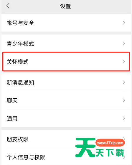 2、然后点击关怀模式。