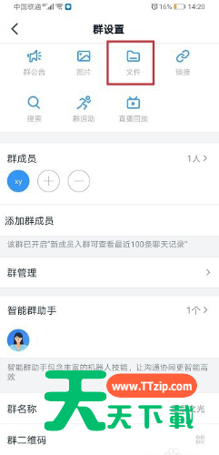 2、进去群设置之后,点击文件