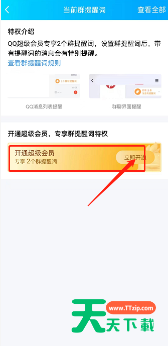 QQ的群聊支持我们设置各种特效,而且还可以设置群提醒词。天天下载带来了设置群提醒词具体的方法,有需要的一起看看吧。 QQ群怎么设置群提醒词?QQ群设置群提醒词方法 1、首先打开QQ中的消息,选择一个群聊,点击进入。 2、然后找到上方的三条杠,进入设置。 3、选择【群提醒词】。 4、最后设置提醒词需要开通超级会员,点击下方的立即开通,然后输入提醒词设置就可以了。 谢谢大家阅读观看,希望本文能帮到大家! @天天下载 除特别注明外,本站所有文章均为 天天下载 原创,转载请注明出处来自 https://www.ttzip.com/29776.html