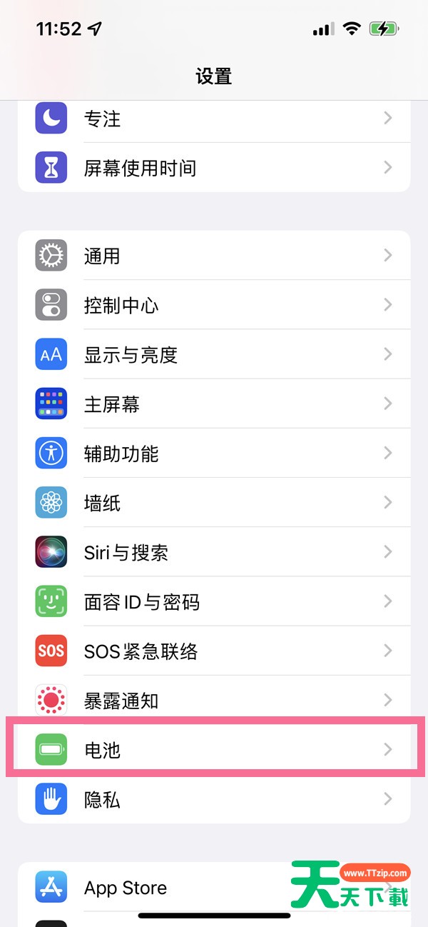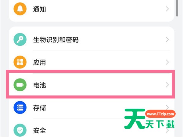 1、首先在手机设置菜单中点击【电池】。