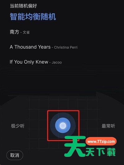 在使用网易云音乐的时候,有的小伙伴开启了云随机功能,想要关闭却不知道该怎么做。下面天天下载为大家带来了网易云音乐云随机关闭教程,希望对你有所帮助。 网易云音乐云随机怎么关闭?网易云音乐云随机关闭教程 1、首先打开网易云音乐,点击进入歌单。 2、我们看到现在歌单是云随机播放。 3、然后点击右下角歌曲播放列表图标。 4、接着点击调配偏好。 5、最后滑动到正中间,显示智能均衡随机,即恢复到了一般随机播放状态,云随机播放已关闭。 谢谢大家的观看,更多手机教程请关注天天下载! @天天下载 除特别注明外,本站所有文章均为 天天下载 原创,转载请注明出处来自 https://www.ttzip.com/29798.html