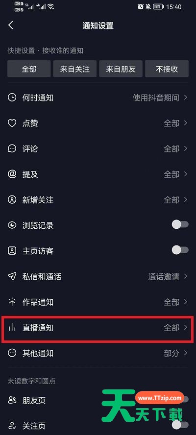 抖音如何设置直播提醒?下面天天下载就为大家详细的介绍一下,大家感兴趣的话就一起来了解下吧! 抖音如何设置直播提醒?抖音设置直播提醒教程 1、第一步:打开抖音,进入抖音主界面后点击【我】->点击右上角【三】; 2、第二步:进入侧边菜单栏点击底部【设置】; 3、第三步:进入设置界面后点击【通知设置】; 4、第四步:在通知设置界面点击【直播通知】; 5、第五步:然后根据自己的需求来设置就可以了。 以上这篇文章就是抖音设置直播提醒教程,有需要的小伙伴快来学习一下吧! @天天下载 除特别注明外,本站所有文章均为 天天下载 原创,转载请注明出处来自 https://www.ttzip.com/29919.html