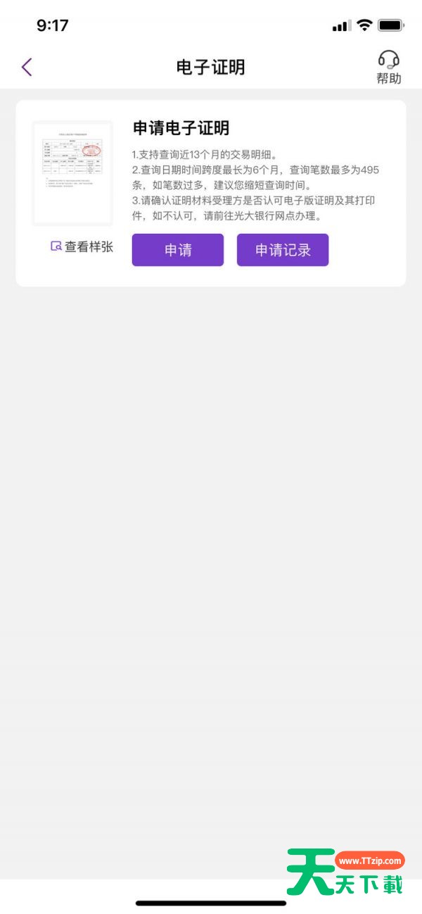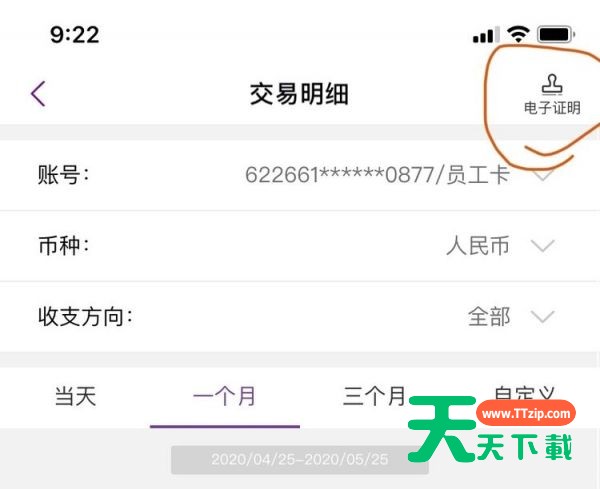 近日有一些小伙伴咨询天天下载光大银行如何打印交易明细电子证明?下面就为大家带来了光大银行打印交易明细电子证明的方法,有需要的小伙伴可以来了解了解哦。 光大银行如何打印交易明细电子证明?光大银行打印交易明细电子证明教程 第一步:打开光大银行APP,点“我的账户”(如图所示)。 第二步:点“查明细”(如图所示)。 第三步:点“电子证明”(如图所示)。 第四步:点“申请”(如图所示)。 以上就是给大家分享的光大银行如何打印交易明细电子证明的全部内容,更多精彩内容尽在天天下载! @天天下载 除特别注明外,本站所有文章均为 天天下载 原创,转载请注明出处来自 https://www.ttzip.com/29990.html