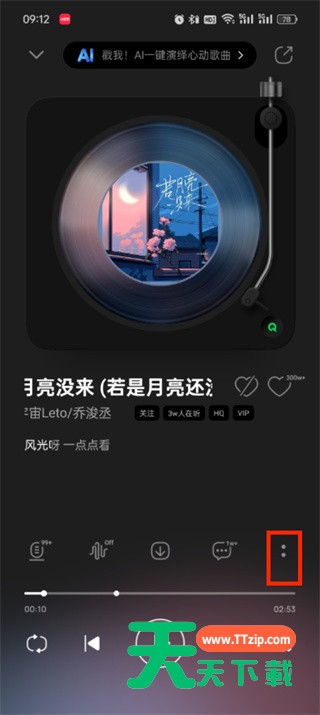 2、然后来到歌曲播放的页面中,再点击右侧下方的【两点图标】;
