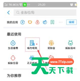 3、手机打开支付宝进入后,找到”城市服务“一项,点击进入。