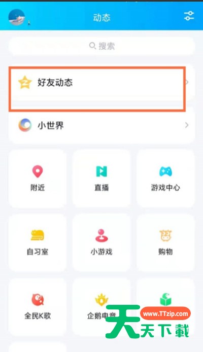 首先需要用户打开腾讯QQ,进入到动态页面中,找到好友动态的功能选项,点击并进入到空间动态的页面中。