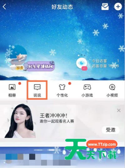 在好友动态的页面中,找到关于说说的功能选项,点击并进入到说说的页面中。