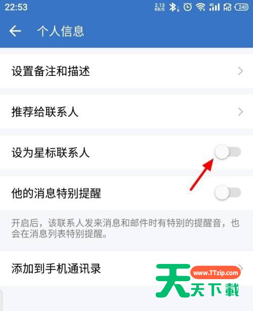 小伙伴们知道企业微信怎么添加星标联系人吗?今天天天下载就来讲解企业微信添加星标联系人的方法,感兴趣的快跟天天下载一起来看看吧,希望能够帮助到大家呢。 企业微信怎么添加星标联系人?企业微信添加星标联系人的方法 1.在手机桌面找到企业微信APP,打开【企业微信】; 2.打开企业微信APP在首页页面,我们直接点击【通讯录】; 3.进入通讯录界面,首先找到要发红包的好友,接着点击【好友】; 4.进入好友个人信息界面,我们直接点击下方【┇】; 5.进入个人信息界面,我们需要开启【设为星标联系人】; 6.设置成功,这样联系人就设置为星标了。 以上就是给大家分享的企业微信怎么添加星标联系人的全部内容,更多精彩内容尽在天天下载! @天天下载 除特别注明外,本站所有文章均为 天天下载 原创,转载请注明出处来自 https://www.ttzip.com/30493.html