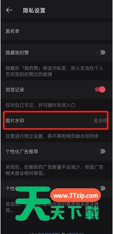 很多人不知道微博在哪设置图片无水印?今日为你们带来的文章是微博设置图片无水印的方法,还有不清楚小伙伴和天天下载一起去学习一下吧。 微博在哪设置图片无水印?微博设置图片无水印的方法 1、选择软件,点击进入设置。 2、选择【隐私设置】。 3、选择【照片水印】。 以上就是给大家分享的微博在哪设置图片无水印的全部内容,更多精彩内容尽在天天下载! @天天下载 除特别注明外,本站所有文章均为 天天下载 原创,转载请注明出处来自 https://www.ttzip.com/30543.html