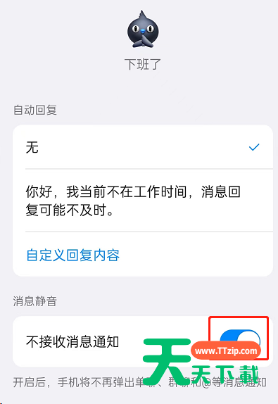 以上这篇文章就是钉钉下班了设置消息静音教程,更多手机教程请关注天天下载!